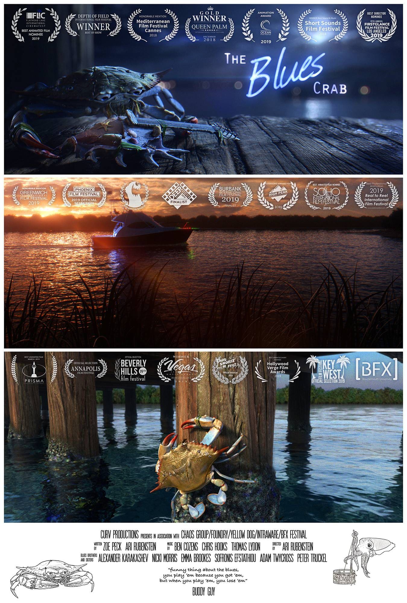 The impetus for this film would be, at minimum to generate opportunities for students and aspiring filmmakers who either don’t have the means nor access to the education required to enter a career in the digital arts. At best The Blues Crab is a prototype for a new production model, which simultaneously provides education, generates intellectual property, and gains global exposure which will translate into opportunities for all involved.